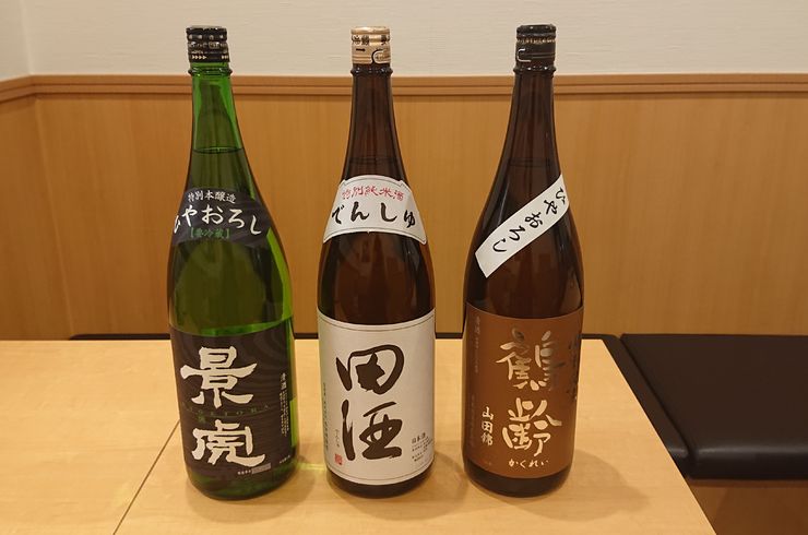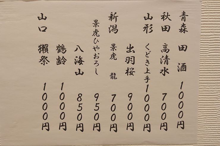 2018/10/10日本酒、ひやおろし入りました。新潟県から、景虎のひやおろしと鶴齢のひやおろし、そして、青森県からは、田酒です。最近では、鶴齢、田酒は、手に入りにくくなっています。田酒なんかは、一升で6000円以上で売っている酒屋さんもあるくらいです。当店は、いずれも一杯1000円(税込)で提供させていただきます。その他、高清水、出羽桜、くどき上手、獺祭などもあります。肴としては、鯖の燻製、ボタンえび、真鱈白子、... -